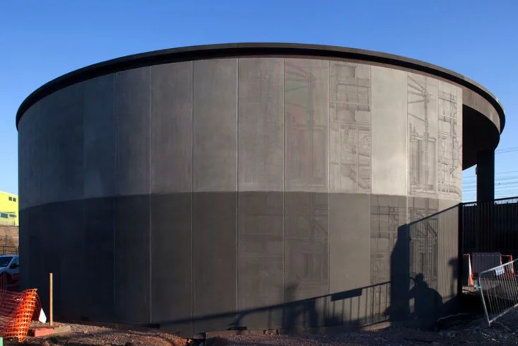 Затое нечакана вынаходлівай аказалася архітэктура тэхнічных збудаванняў. Помпавая станцыя ў Алімпійскім парку (бюро John Lyall Architects) уяўляе сабой стыльную камбінацыю адкрытых жалезабетонных паверхняў са спецыяльнымі заржавелымі металічнымі лістамі.