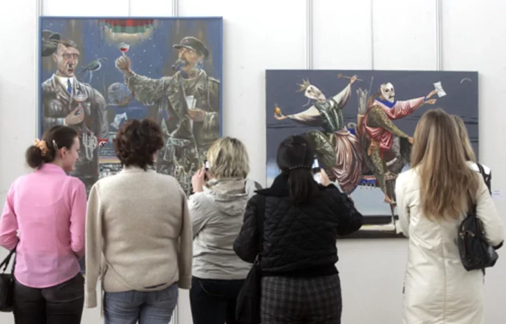 Аўтар адных з самых правакацыйных карцінаў Алесь Марачкін павітаўся з усімі за руку і запрасіў пагледзець выставу. Аднак чыноўнікі досыць няветліва буркнулі штосьці накшталт «мы тут з нагоды рамонту» і за лічаныя хвіліны зьніклі.