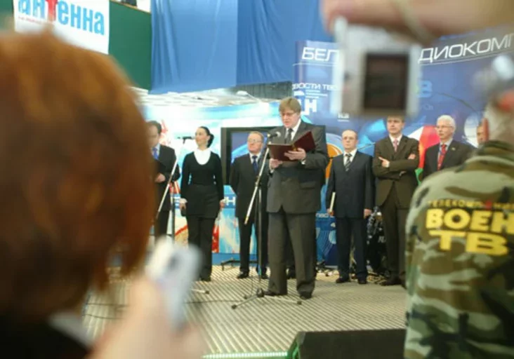 Дзеля ўрачыстага адкрыцьця выставы на сцэну запрасілі міністра інфармацыі Ўладзімера Русакевіча, міністра культуры Ўладзімера Матвейчука, начальніка галоўнага ідэалягічнага ўпраўленьня Адміністрацыі прэзыдэнта Алега Праляскоўскага, старшыню Белдзяржтэлерадыёкампаніі Аляксандра Зімоўскага, кіраўнікоў дзяржаўных тэлеканалаў Рыгора Кісяля, Юрыя Казіятку, рэдактараў найбуйнейшых дзяржгазэтаў Паўла Якубовіча ды Анатоля Лемяшонка, а таксама міністра па справах друку ды інфармацыі Маскоўскай вобласьці Сяргея Маісеева. Побач са сцэнай стаяла старшыня Цэнтарвыбаркаму Лідзія Ярмошына.