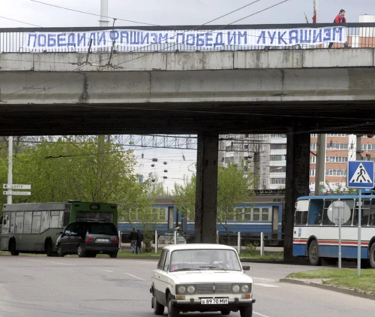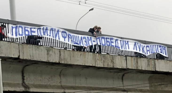 А 19-й на мосьце над вуліцай Чыгуначнай, недалёка ад Інстытуту культуры, моладзь вывесіла расьцяжку.