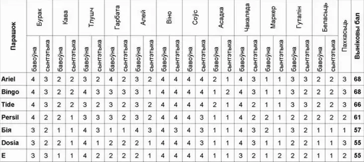 Самыя дарагія парашкі ня вартыя сваёй цаны. Бо, паводле здольнасьці адмываць, месцамі саступаюць недарагім. А варыянт «сярэдзіны», калі пакупнік бярэ ня самае дарагое, але й ня самае таннае, рацыйны адно ў выпадку з турэцкім «Bingo».