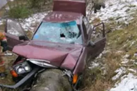 Аўтамабіль урэзаўся ў трубу для ліўнёўкі. Прычым глыбока ўрэзаўся - фота1