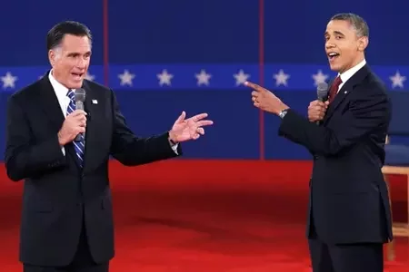 Оба кандидата свободно ходили по сцене и часто перебивали друг друга: Обама—Ромнм — 1:115