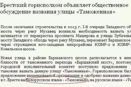 Брэсцкія ўлады прапануюць назваць вуліцу на трасянцы14