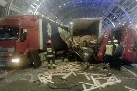 Пад Варшавай сутыкнуліся тры фуры, адна з іх беларуская — фота
