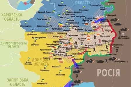 КАРТА фронту на ўсходзе Украіны: баевікі наступаюць перад самітам у Мінску5