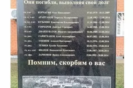Памятник мотострелкам в селе Шали (Россия): 9 из 10 погибли в августе 2014 года16