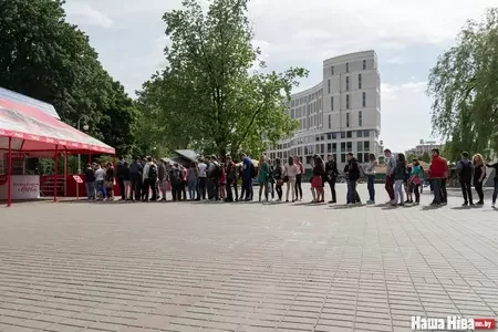 Бясплатная раздача «Кока-Колы» ў Мінску сабрала вялізную чаргу ФОТА7