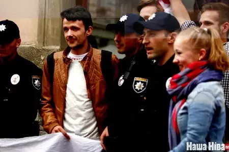 Белорусы фотографируются с новой полицией Львова 3