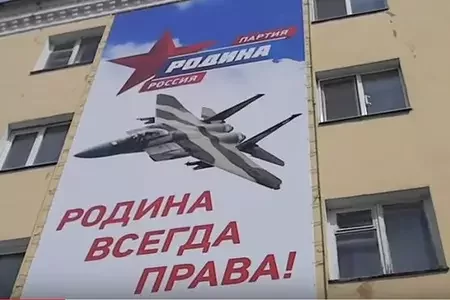 В Брянске вывесили патриотический плакат с американским истребителем15
