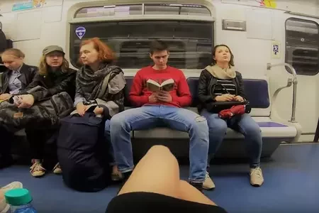 У метро Пецярбурга феміністкі аблілі адбельвальнікам штаны 70 мужчын, якія шырока рассоўвалі ногі24
