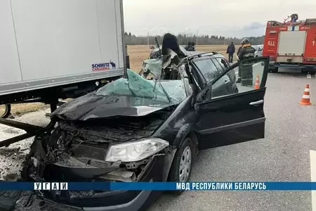 У Лёзненскім раёне Renault уляцеў пад грузавік: адзін чалавек загінуў