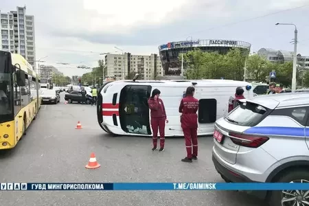 На вуліцы Сурганава ў Мінску перакулілася «хуткая дапамога»