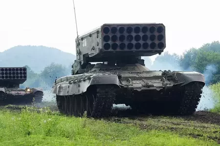 Украінцы паказалі знішчэнне расійскай цяжкай агнямётнай сістэмы «Солнцепек» украінскім процітанкавым комплексам «Стугна»