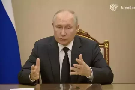 Адразу пасля тэлезвароту Пуціна ў Крамлі паведамілі пра нараду з кіраўніцтвам сілавых структур. Пуцін выглядае дзіўна5