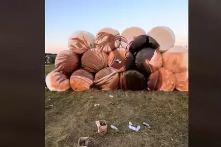 Беларус намаляваў на саламяных цюках пад Астраўцом карціну ВІДЭА2