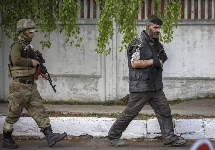 У інтэрнэце з'явіліся фоты палоннага абаронцы Марыупаля. Параненага, яго вядуць пад канвоем. Мы даведаліся, хто гэты чалавек.