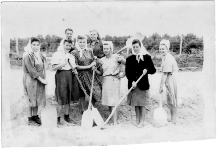 Ірына Волкава з лагернымі сяброўкамі па няшчасці. Фота зроблена ў Тайшэце ўжо пасля смерці Сталіна, калі рэжым у лагерах памякчэў. Фота: represii.net