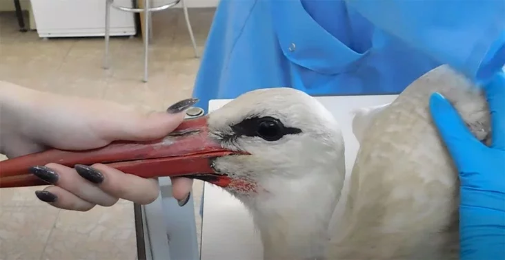 «Бусел быў на мяжы жыцця: адкрыты пералом крыла, раны на шыі. Мабыць, птушка падверглася нападу драпежніка. Дактары пачалі змагацца за яе жыццё. Крыло прыйшлося ампутаваць. Нягледзячы на цяжкі стан, бусел хутка пайшоў на папраўку», — расказалі ў заапарку.
