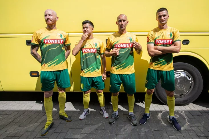«Нёман» адправіўся на матч з румынамі зноў аўтобусам. Гульцы паехалі ў форме з ўзорамі, якія сімвалізуюць еўрапейскія краіны і тысячы кіламетраў на клубным аўтобусе, якія праехалі футбалісты год таму. Фота: ФК «Нёман».