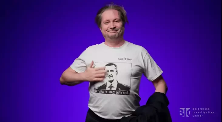 Майка з двухсэнсоўным надпісам «Бацька ў нас Круты». Сяргей Чалы ўжо падрыхтаваў мерч да перадвыбарчай кампаніі кіраўніка адміністрацыі Лукашэнкі Дзмітрыя Крутога. Скрыншот відэа