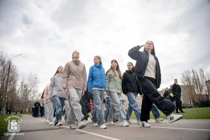 Мяркуючы па фотаздымках, якія апублікаваў Гомельскі аблвыканкам, на рэпетыцыі падлеткаў, у тым ліку дзяўчат, вучылі хадзіць строем.