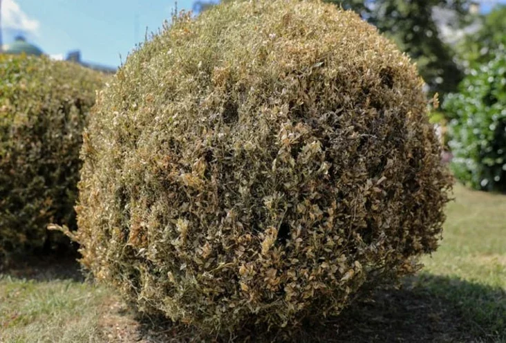У Беларусі першы ачаг Агнёўкі самшытавай знайшлі ў 2019-м. Праз два гады матылёк за некалькі дзён знішчыў хмызнякі ў цэнтры Брэста, якія прыйшлося выкарчаваць (на здымку).