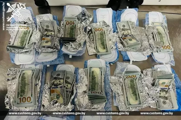 Высветлілася, што жанчына паспрабавала схаваць гэтыя грошы нестандартным спосабам — абгарнула іх у фальгу і схаваў у ўпакоўках з жаночымі гігіенічнымі сродкамі.