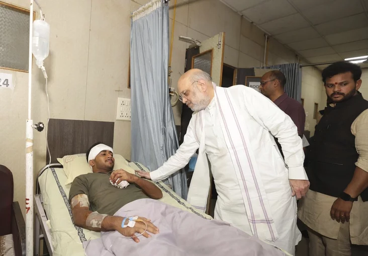 Міністр унутраных спраў Індыі наведвае Рамеша ў бальніцы. Фота: Ministerio del Interior de India vía AP