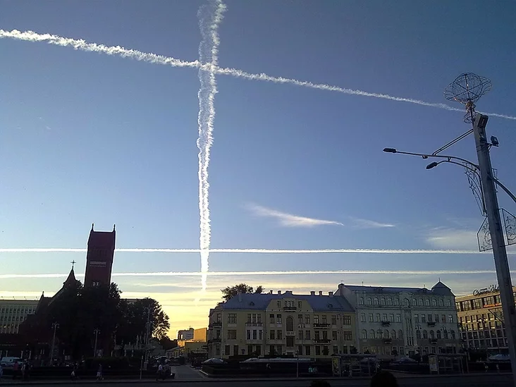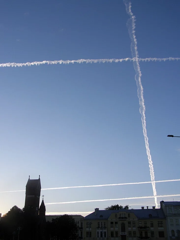 Сёння ж мы ведаем, што, напрыклад, у дадзеным канкрэтным выпадку маем справу з кандэнсацыйнымі слядамі, якія пакінулі ў па сабе самалёты.