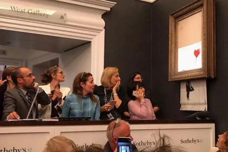 Karcina Benksi «Dziaŭčynka z šaram» samaźniščyłasia adrazu paśla taho, jak jaje pradali na aŭkcyjonie Sotheby's u Łondanie za £1,04 młn, abo $1,4 młn (biez uliku premii pakupnika — za £860 tys., abo $1,1 młn).