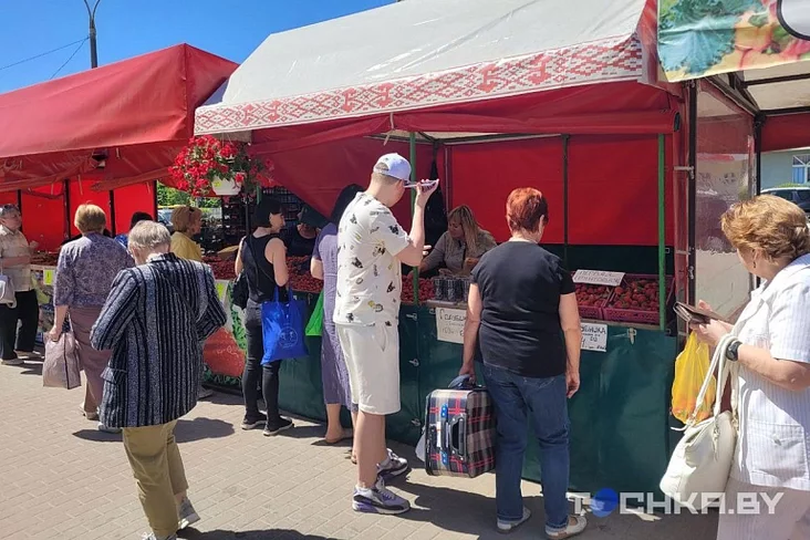 «Suničny hatunak. Jon bolš da sunic padobny, niešta siaredniaje, miks», — adznačaje pakupnica, zabirajučy z vahaŭ dva kiło śviežych jahad.