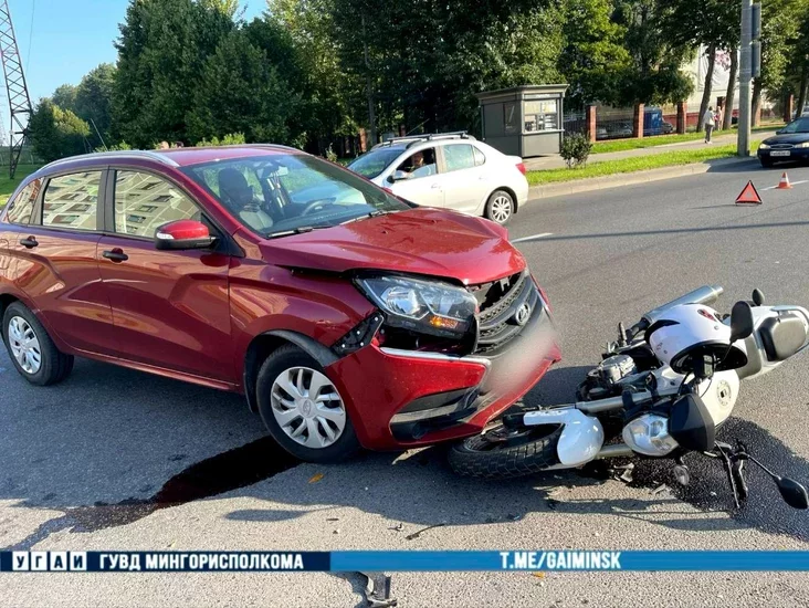 Pavodle papiaredniaj infarmacyi, siońnia kala 8 hadzin ranku pablizu doma №31 pa vulicy Vaŭpšasava 47-hadovaja žančyna, kirujučy aŭtamabilem Lada, pry vyjeździe z dvarovaj terytoryi pry pavarocie naleva nie prapuściła matacykł.