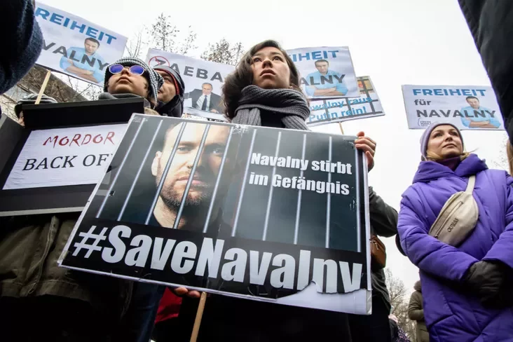 Akcyja ŭ padtrymku Alaksieja Navalnaha kala ambasady Rasii ŭ Bierlinie, Hiermanija, 24 studzienia 2022 h. Fota: Emmanuele Contini / NurPhoto via Getty Images
