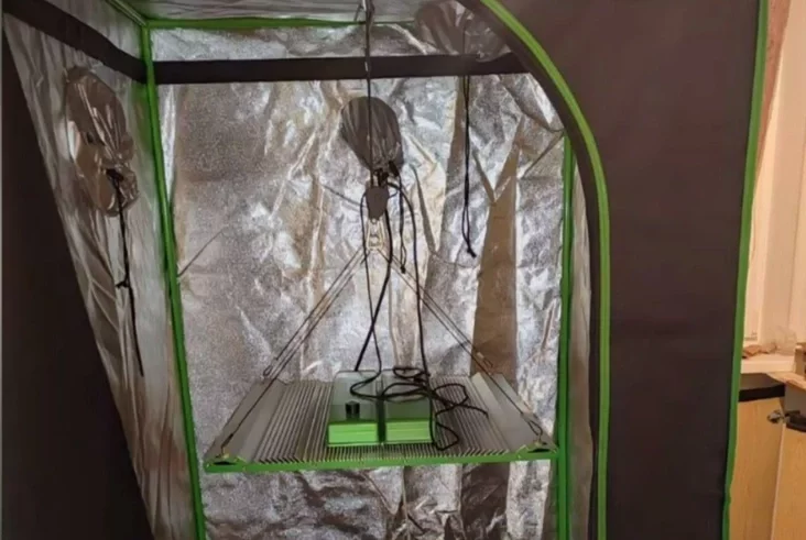 Na kuchni siłaviki ŭbačyli vystaŭlenuju turystyčnuju pałatku, abstalavanuju pad boks dla vyroščvańnia kanoplaŭ. Supracoŭniki narkakantrolu, jakija prybyli paźniej, kanfiskavali bolš za 600 hramaŭ vysušanaj marychuany, 2 raśliny kanoplaŭ i ŭsio nieabchodnaje dla jaje vyroščvańnia.