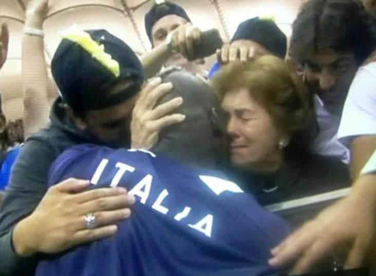 Forvard zbornaj Italii Maryjo Bałateli paśla paŭfinału z Hiermanijaj, dzie vyznačyŭsia dublem, prymaje vinšavańni ad svajoj mamy.