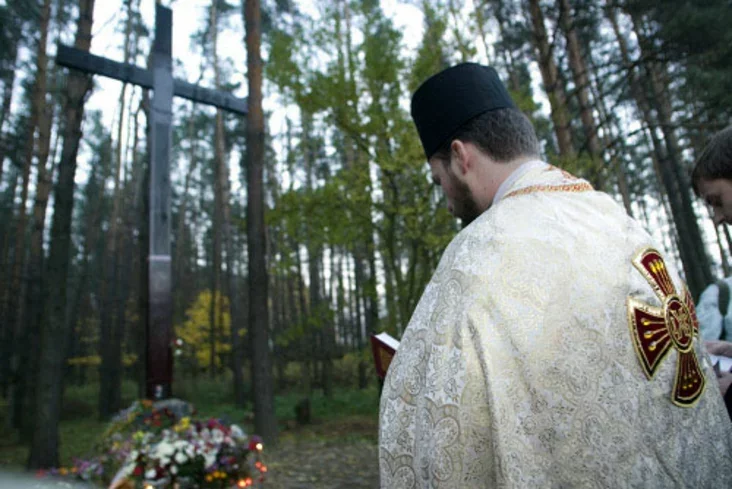 U paniadziełak, u Kurapatach, pradstaŭniki hramadzkaści ŭšanavali pamiać achviar stalinizmu, jakija byli źniščanyja ŭ Miensku i jaho vakolicach. Fotarepartaž Andreja Lankieviča