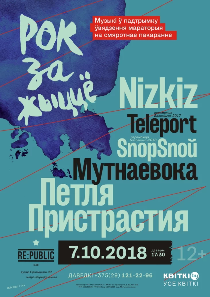 Nahadajem, štohadovy fiestyval «Rok za žyćcio», prymierkavany da Suśvietnaha dnia baraćby suprać śmiarotnaha pakarańnia, adbudziecca sioleta ŭžo ŭ treci raz. U papiarednija hady jon taksama prachodziŭ ŭ kłubie Re:Public, svaim udziełam ideju admieny śmiarotnaha pakarańnia padtrymali «Daj Darohu!», Akute, Re1ikt,:B:N: i inšyja hurty, a taksama tysiačy ich prychilnikaŭ. Sioleta ideju ŭviadzieńnie maratoryja na vyšejšuju mieru ŭ našaj krainie padtrymlivajuć hurty Nizkiz, «Pietla Pristrastija», «Mutnajevoka», a taksama pieramožcy konkursu znakamitaha fiestyvalu «Basovišča» dvuch apošnich hadoŭ, SnopSnou i Teleport. Jany syhrajuć 7 kastryčnika u minskim kłubie Re:Public, pačatak u 17.30. Kvitki: 10-15 rubloŭ (nabyć možna tut).