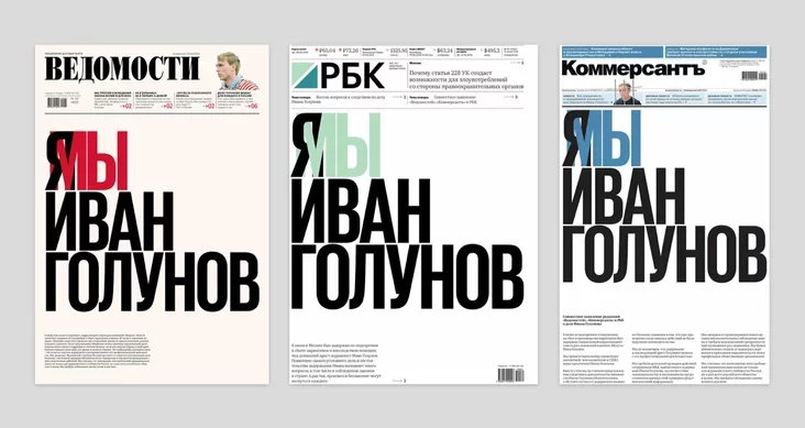 «Viedomosti», «Kommiersant» i RBK upieršyniu ŭ historyi vyjšli z adnolkavaj pieršaj pałasoj. Na joj — žurnalist Ivan Hałunoŭ