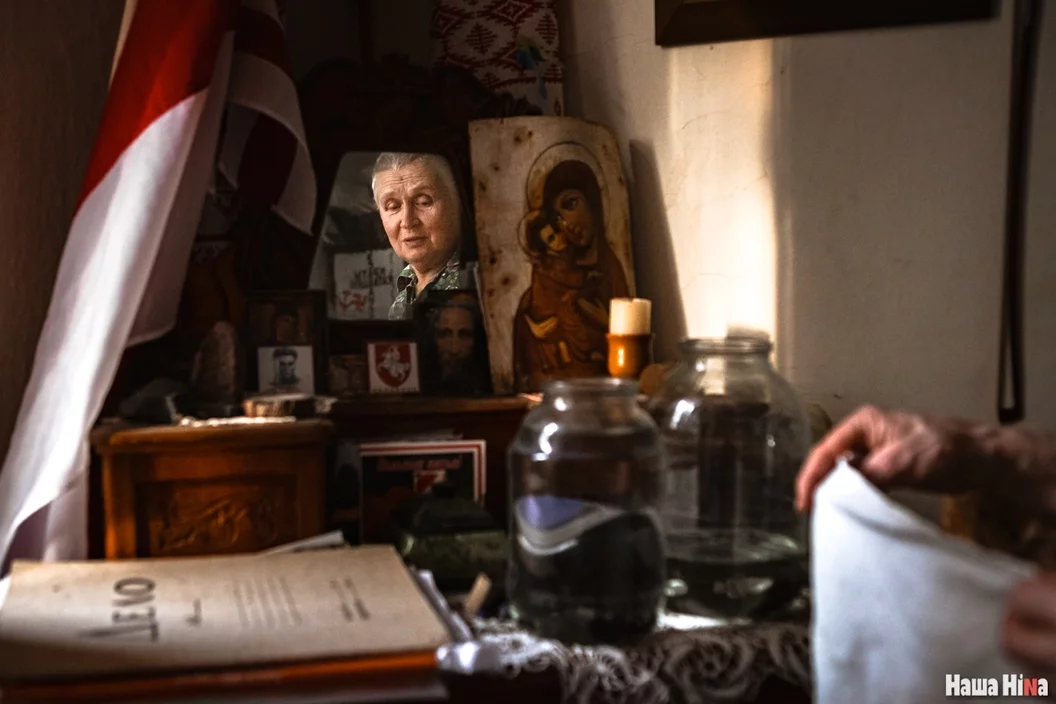 «Pieračytvała Kupału, Hienijuš. Pačała Sieviarynca «Biełarusalim», ale kniha źnikła: ci ŭnučka zabrała, ci Alesia. A bolš, kaniečnie, haziety. «Novy čas» i «Naša słova» vypisvaju. Raniej i «Našu Nivu» kuplała. Časam biaru «Narodnuju volu», ale tam šmat ruskamoŭnych tekstaŭ. Ja navat im užo skazała pra heta».