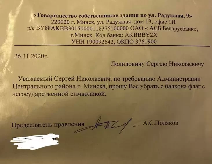 — A mnie nichto tak i nie rastłumačyŭ, čamu nie maju prava vyviešvać ściah u svajoj kvatery. Tak, čytaŭ pastanovy, kali ludziej štrafavali za simvoliku, ale ŭsio roŭna nie liču hety ściažok niejkim pikietam, i nie ŭśviedamlaju, što rablu niešta supraćzakonnaje. Absurdnaja situacyja, adnak u našaj krainie ŭžo pierastaješ čamuści ździŭlacca.