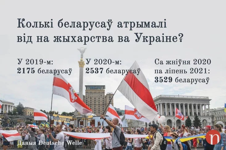 Takija danyja ŭ adkaz na zapyt DW padała Dziaržaŭnaja mihracyjnaja słužba Ukrainy. Dla paraŭnańnia, u 2019 hodzie va Ukrainie vydali dla biełarusaŭ 2175 časovych vidaŭ na žycharstva, a ŭ 2020-m — 2537.