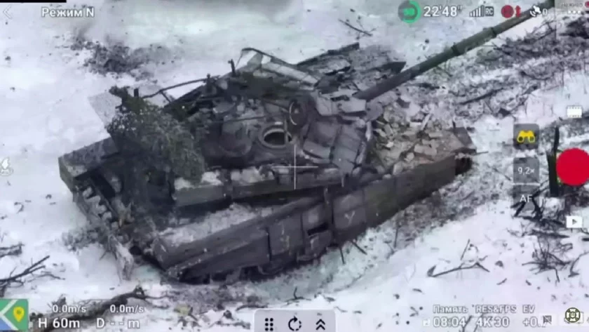 U sacyjalnych sietkach źjaviłasia videa momantu boju, jaki adbyŭsia 11 studzienia hetaha hoda ŭ rajonie siała Stepavaje pad Aŭdziejeŭkaj. Na im vidać, jak pa rasijskim tanku T-90M viadziecca niaspynny ahoń.