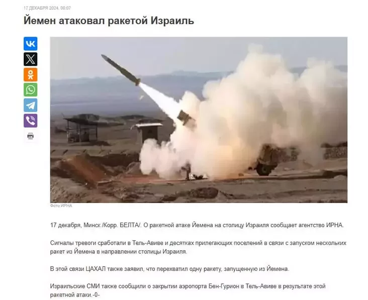 U paviedamleńni pra rakietnuju ataku Jemiena na Izrail, apublikavanym adrazu paśla paŭnočy 17 śniežnia, izrailskija ŚMI nazvanyja «sijanisckimi miedyja-krynicami» i «sijanisckimi ŚMI», a Armija abarony Izraila (CACHAŁ) — «sijanisckaj armijaj».