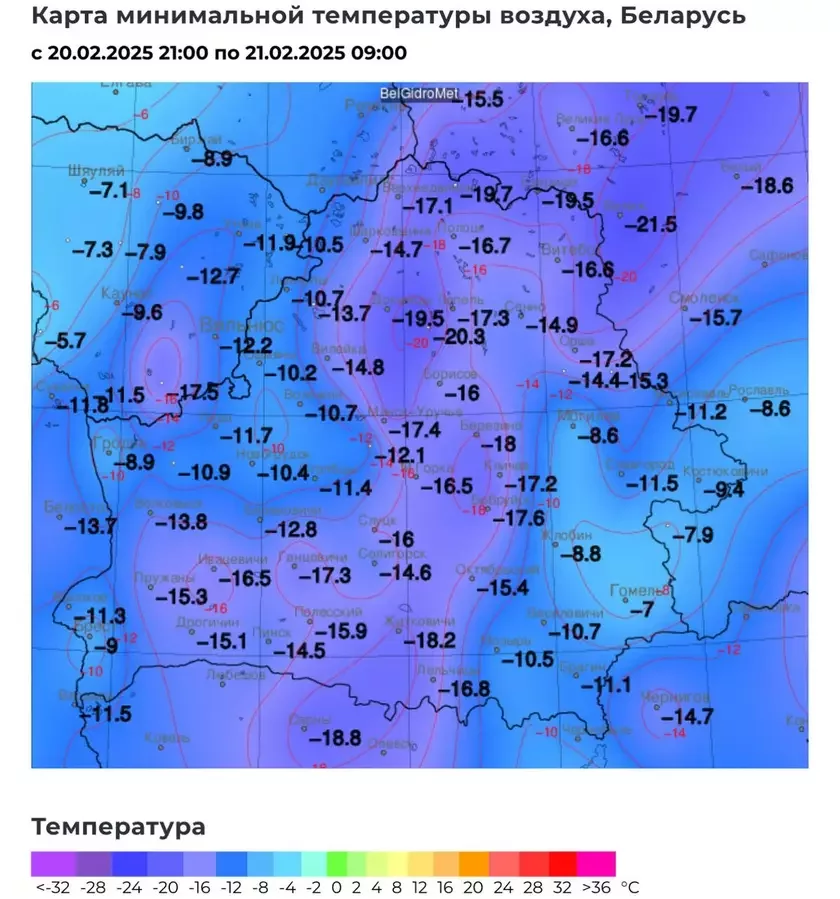 Takim čynam u Biełarusi źmiaściŭsia ŭmoŭny polus choładu. Niekalki dzion samyja chałodnyja tempieratury fiksavalisia na mieteastancyi «Paleskaja» ŭ Bresckaj vobłaści. U noč na minuły paniadziełak tam byŭ zafiksavany tempieraturny rekord zimy — minus 22°S. Siońnia ž tam było minus 15,9°S.