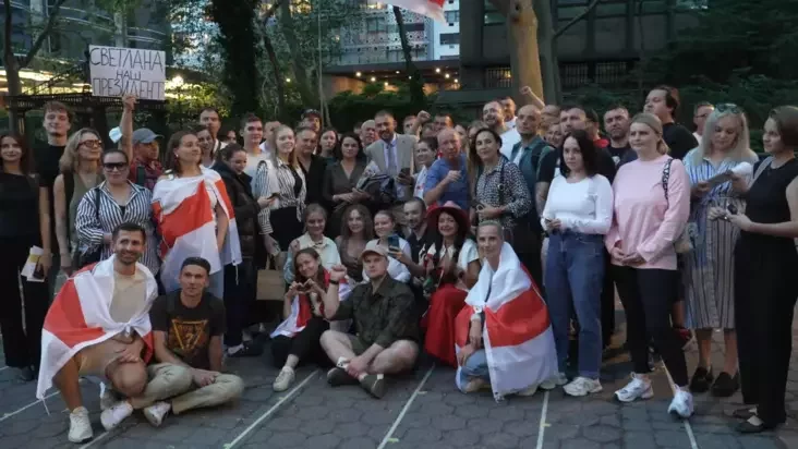 Zaŭvažyŭšy, što muzyka spaźniłasia praz zatory, Siarhiej Cichanoŭcki ŭklučyŭ na telefonie himn «Krainy dla žyćcia» i razam sa Śviatłanaj padyšoŭ da hrupy ź niekalkich dziasiatkaŭ biełarusaŭ, jakaja čakała ich u skviery.