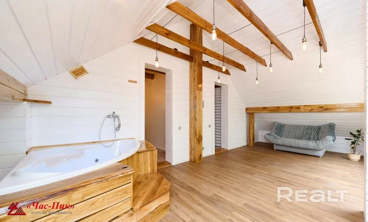 Taksama tut pradumany harderobnaja, vannaja i tualet. Na pieršym paviersie zroblena i saŭna.