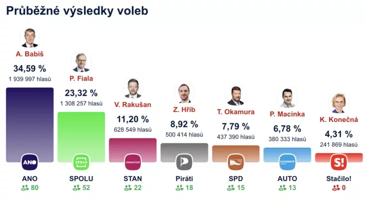 Niahledziačy na davoli pierakanaŭčuju pieramohu — ANO palepšyła svoj vynik ź minułych vybaraŭ na 7,4%, Andreju Babišu budzie niasprosta skłaści pazł bolšaści. Prezident Čechii, były nataŭski hienierał Piotr Pavieł, užo zajaviŭ, što farmavańnie ŭradavaj kaalicyi moža być składanym i što jon nakładzie vieta na ŭvachodžańnie va ŭrad luboj, jak jon vykazaŭsia, «ekstremiscka antyjeŭrapiejskaj palityčnaj siły».