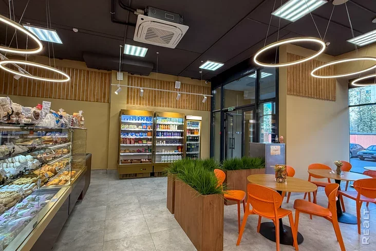 Ciapier u kvartale pracuje niekalki mahazinaŭ i kaviarniaŭ. U vialikim mahazinie «Atłant» pradajecca roznaja technika, kamplektujučyja, možna znajści štości pa drobiazi. Asobna jość zona ŭcenki. Tut vystaŭleny pazicyi sa źnižkami. Naprykład, adzin z chaładzilnikaŭ pradajecca paśla ramontu. Kaštuje 1 445 rubloŭ. Hetaja ž madel jość u mahazinie i novaja — za 2 147 rubloŭ.