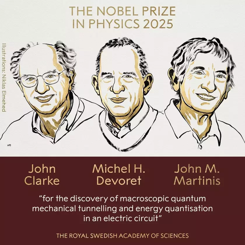Siońnia ŭ Stakholmie nazvali nobieleŭskich łaŭreataŭ pa fizicy. Nobieleŭskaja premija prysudžana Džonu Kłarku, Mišelu Ch. Devare i Džonu M. Marcinisu «za adkryćcio makraskapičnaha kvantava-miechaničnaha tunelavańnia i kvantavańnia enierhii ŭ elektryčnym łancuhu».